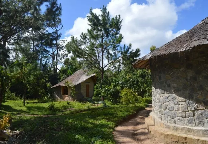 Hyttene er spredt over et stort område, som er forbundet med smale stier og flankert av tropiske planter. Her kan du også være heldig nok til å støte på kameleoner på vei til frokost – og om kvelden kanskje til og med en muselemur eller to.