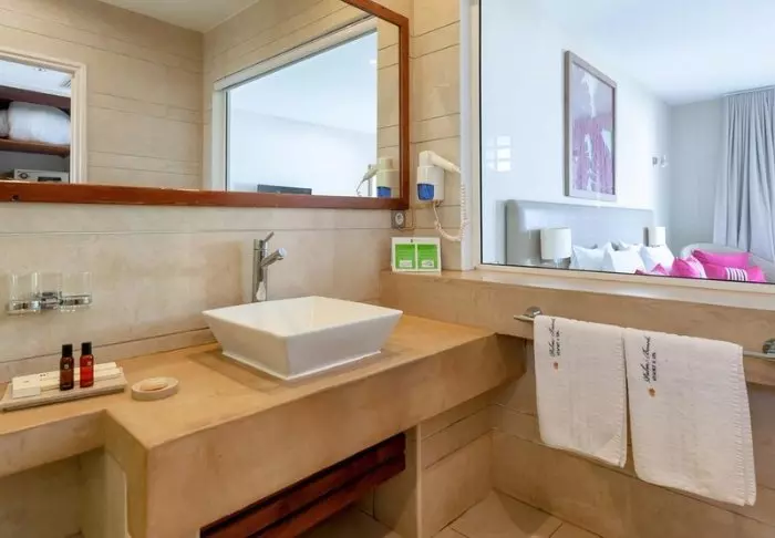 Fra bassenget kan du se havet og Madagaskars eget taffelberg – et fjell med en topp som er flat som en pannekake. Over lobbyen finner du et loungeområde som inviterer deg til å slappe av på sofaen, lese en god bok og ta inn den vakre utsikten.