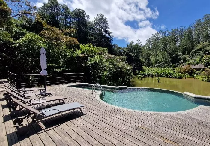 Manjarano Lodge & Spa har ti nydelige bungalower midt i et privat reservat bare et steinkast fra Andasibe-Mantadia nasjonalpark.