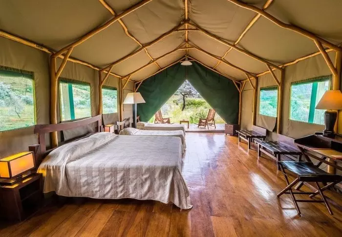 “Lodge” er neppe det helt rette begrepet, siden dette er en teltleir med 40 luksustelt i en fantastisk øst-afrikansk stil – med flotte tregulv, god plass, bad med både innendørs og utendørs dusj og en privat veranda med solsenger der du kan ta inn utsikten med full komfort. Teltleiren ligger på en høyde, med god plass mellom teltene, så du får en fantastisk følelse av god plass med vakker utsikt over det omkringliggende landskapet.