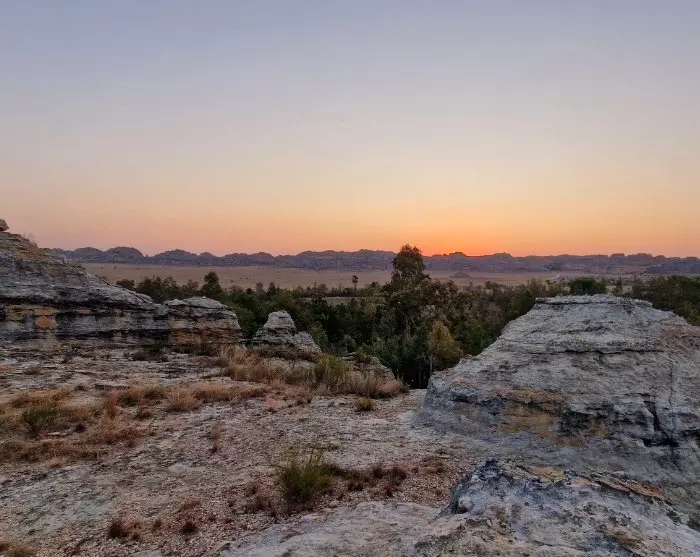Når savannen går over i sandsteinsklipper, vet du at du har kommet til Isalo.