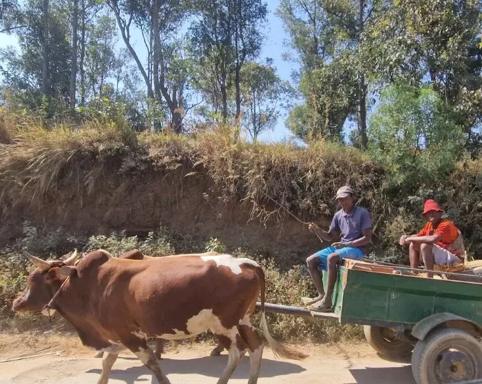 Du vil utvilsomt også legge merke til alle zebu-kyrne. De er overalt: på veien, i markene, i oppkjørslene og i hagene. De ligner den karakteristiske indiske kua med en fetthump på nakken, men zebuen er ikke hellig på samme måte som i India. På Madagaskar er det lov å spise zebu, og det bør du definitivt gjøre – kjøttet smaker fantastisk. Spesielt når det tilberedes med masse tomater, løk, hvitløk og ingefær. Du bare ber om “romazava”, som selvfølgelig spises med ris.