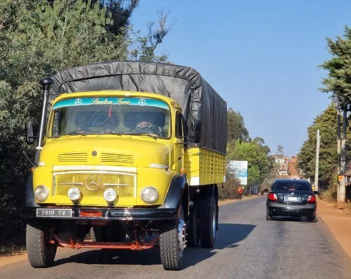 Etter et par timer med kjøring gjennom det litt kuperte platålandskapet med alle rismarkene, endrer landskapet seg. Åsene blir høyere, og skogene tettere. Sjåføren navigerer proft gjennom hårnålssvingene, og her og der kan du se elven nederst i dalførene. Trafikken fungerer fint – helt til den ikke gjør det. Gamle Mercedes-Benz-lastebiler fra den franske kolonitiden parkeres skjødesløst parkert langs siden av veien, og er noen ganger til hinder for trafikken. Eller så er en liten bod ved veien så populær at trafikken står helt stille. «Mura mura», som de sier på Madagaskar – bare ta det med ro.