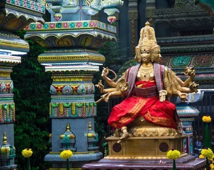 Turen fortsetter deretter til Chinatown og det nærliggende hindutempelet Sri Maha Mariamman. Dette er Malaysias eldste hinduistiske tempel, og er et imponerende skue med sin fargerike og rikt utsmykkede gopuram (inngangstårn), flankert av detaljerte figurer av hinduistiske guder.