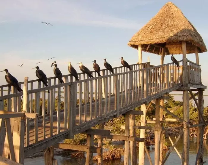 Du seiler gjennom den fortryllende lagunen, som er omgitt av frodige mangrover. Reisen gir deg enhver mulighet til å fordype deg i områdets rike biologiske mangfold. Forbered deg på å bli møtt av et spektakulært syn når de rosa flamingoene og andre eksotiske fugler kommer frem fra gjemmestedene sine. I lagunen vil du også kunne se ulike stimer av fisk og delfiner som svømmer rundt i vannet.