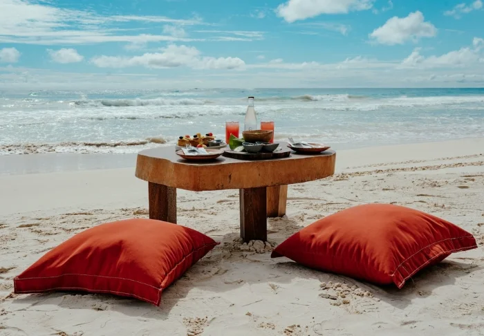Her kan du starte dagen med å gå ned på stranden og beundre den spektakulære soloppgangen over det asurblå karibiske havet før du fortsetter med en fellesøkt yoga arrangert av hotellet. Når det blir varmt, kan du bade i havet eller ta en forfriskende dukkert i det lille bassenget som er omkranset av vaiende palmer og ligger ved siden av den hvite sandstranden.