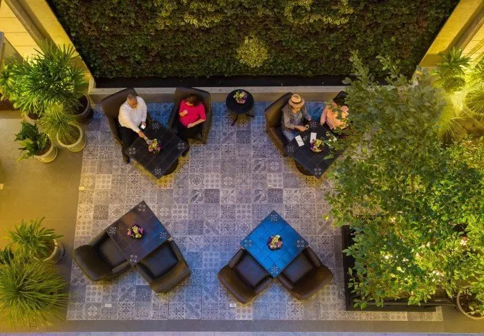 Når du trenger en pause etter en begivenhetsrik dag, kan du slappe av i en solseng i den frodige bakgården eller ta med en bok opp til en av takterrassene og slappe av i en av de heklede hengekøyene. Det er to små bassenger på hotellet: ett under åpen himmel, og et annet som er under tak.