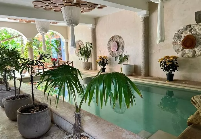 Ta et forfriskende dykk i bassenget som minner om en naturlig cenote, eller nyt en kjølig drink på en solseng under solens stråler.