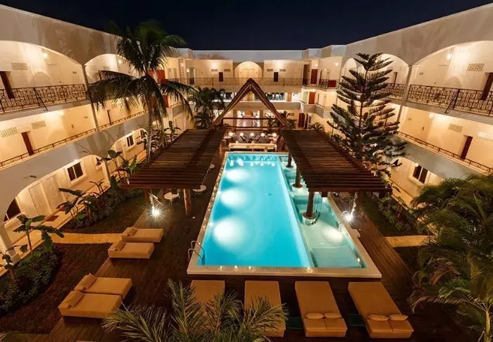 Hotellet er oppført i typisk mexicansk stil, der rommene danner en ramme om det frodige området i midten. Her ligger det en ekte oase med palmer, basseng og barområde. Dette er et møtested for både store og små, og stemningen er behagelig avslappet. Her er det gode muligheter til å slappe av med en god bok mens du nipper til en drink og nyter den tropiske stemningen.