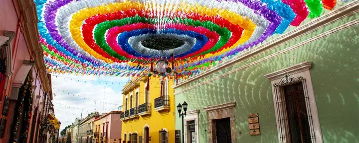 Etter utflukten blir du kjørt tilbake til hotellet ditt, hvor du har noen timer fri til å spise lunsj og gjøre deg klar til neste punkt på programmet – en byrundtur i Oaxaca. Du besøker byens sentrale plass, zócaloen, som har en utrolig innbydende stemning, der mange lokale samles, og lyden av marimbaband ofte runger over plassen. Et par gater unna finner du Mexicos mest kjente barokkirke, Santo Domingo. Ved siden av ligger museet med samme navn, hvor mange av funnene fra det store arkeologiske området Monte Albán, som du besøkte tidligere på dagen, er utstilt. Rundturen tar deg så gjennom de sjarmerende gatene i den gamle bydelen, forbi flere av byens kjente landemerker. Du besøker det lokale Benito Juárez-markedet hvor du kan kjøpe alt fra lokale råvarer til håndlagde produkter, samt Mercado 20 de Noviembre, som er byens populære matmarked. Dagen avsluttes med et besøk på en sjokoladefabrikk, hvor du får se hele prosessen fra kakaobønne til ferdig sjokolade.
