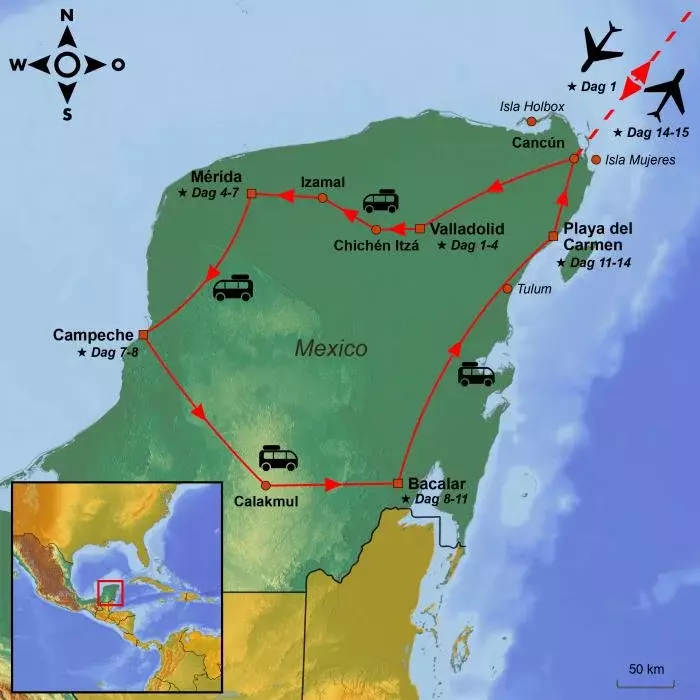 Etter et avslappende opphold ved den fredelige Bacalar-lagunen er det på tide å reise videre mot nye eventyr langs Yucatáns karibiske kyst. Du blir hentet på hotellet ditt om morgenen og kjørt nordover mot den populære feriebyen Playa del Carmen.