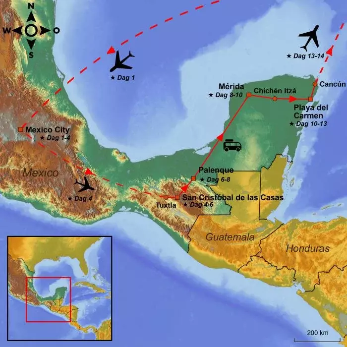 I dag forlater du Mexico City og flyr til Tuxtla, som ligger i Chiapas-provinsen. Du blir hentet på flyplassen og kjørt ut til den spektakulære kløften, Sumidero Canyon. Her venter en betagende 2-timers speedbåttur inn i kløften, der bratte fjellvegger tårner seg opp på begge sider av deg. Du kan være heldig å oppleve både aper, krokodiller og ulike fuglearter her inne. Deretter fortsetter du med buss til San Cristóbal de las Casas, og du har resten av dagen til egen disposisjon.