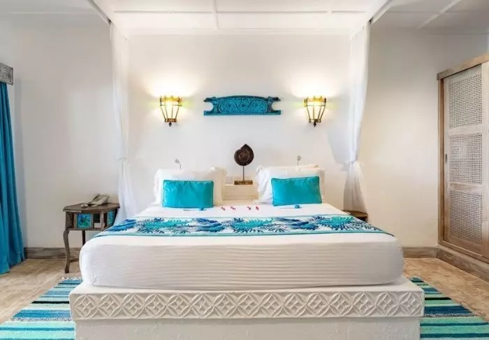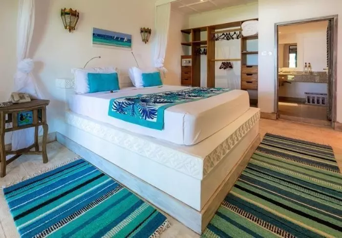 Alle rom er individuelt innredet, inspirert av tradisjonell swahili-design. Alle rom har minibar, safe, Wi-Fi aircondition og myggnett over sengene.