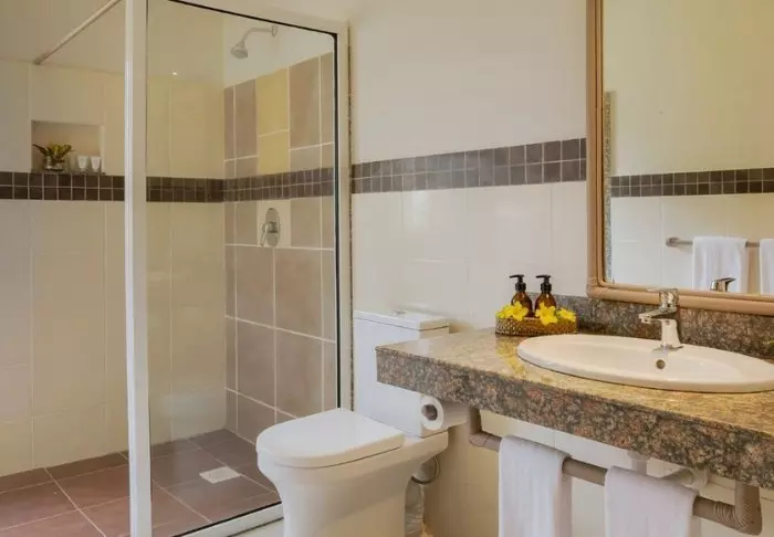 Alle rom har enten egen terrasse eller balkong med møbler, slik at du kan nyte utelivet. Rommene er romslige og har alle aircondition, minikjøleskap (som kan fylles med brus og lokale øl, hvis du spør i resepsjonen), sikkerhetsboks, hårføner, te- og kaffe fasiliteter, samt Wi-Fi. Det er også Wi-Fi i fellesområdene.