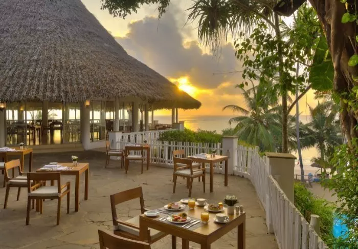 Resortet er omgitt av 80 hektar med tropiske hager og plassert på en forhøyning med flott utsikt over det indiske hav og den fine, gyldne stranda.