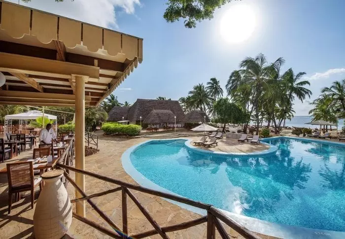 Hotellet kan skryte av å ha det som kanskje er det dypeste svømmebassenget i hele Kenya – 5 meter, og det betyr at det er et perfekt sted å lære å dykke. Solsengene er spredt ut over hele området, så du kan selv velge om du vil ligge på stranden, ved bassenget eller kanskje under en palme på den grønne gressplenen.