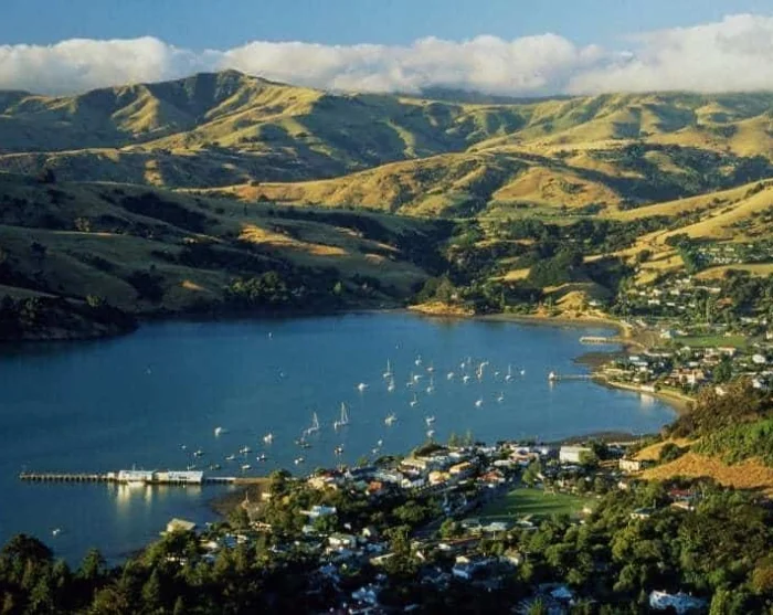 Akaroa ligger på Banks Peninsula og er kjent for sin franske arv, pittoreske omgivelser og rike marineliv. Byen er det eneste stedet i New Zealand hvor franske bosettere etablerte en koloni, noe som gjenspeiles i byens arkitektur og atmosfære.