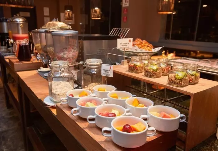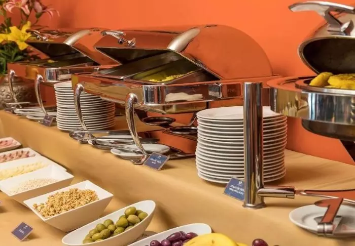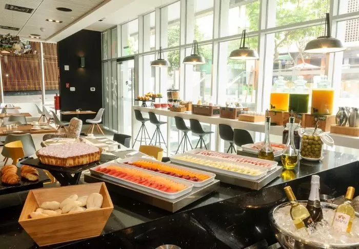 På hotellets restaurant kan du starte dagen med den inkluderte frokostbuffeten. Her kan du velge mellom forskjellige frokostprodukter som brød, ost, skinke, juice mm.