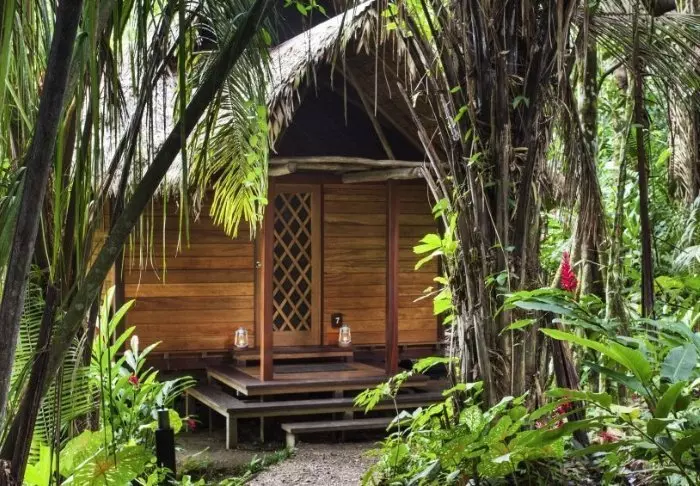 Her er det bare 25 vakkert innredede bungalower – alle bygget i tre og på pæler – så de ikke blir oversvømmet når det kommer kraftige tropiske regnskyll. Hyttene har komfortable senger med myggnett, takvifte og eget bad med varmt vann, badekåpe og toalettartikler.