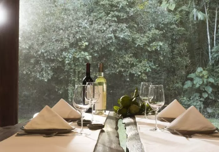 Den inkluderte frokosten inntas i lodgens hovedrestaurant. Der er det også mulig å bestille lunsj og middag – både tradisjonelle og internasjonale retter. I den koselige grillrestauranten ved elvebredden kan du smake deilige peruanske grillretter mens du tar inn den fantastiske utsikten over elven.