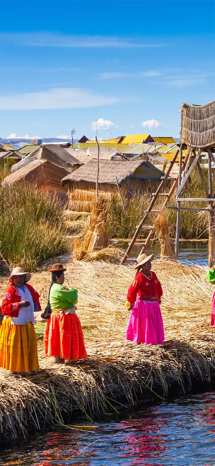 Fra byens havn seiler du først ut til de flytende sivøyene, Islas Uros, som fremdeles er bebodd av Uros-folket. Dette folket bruker sjøens sterke totorasiv til å bl.a. bygge, øyer, hus og båter. Selv om øyene i dag er blitt litt kommersielle, er det fremdeles fascinerende å lære om Uros-folkets kultur og gamle tradisjoner og ikke minst beundre deres imponerende håndverk.