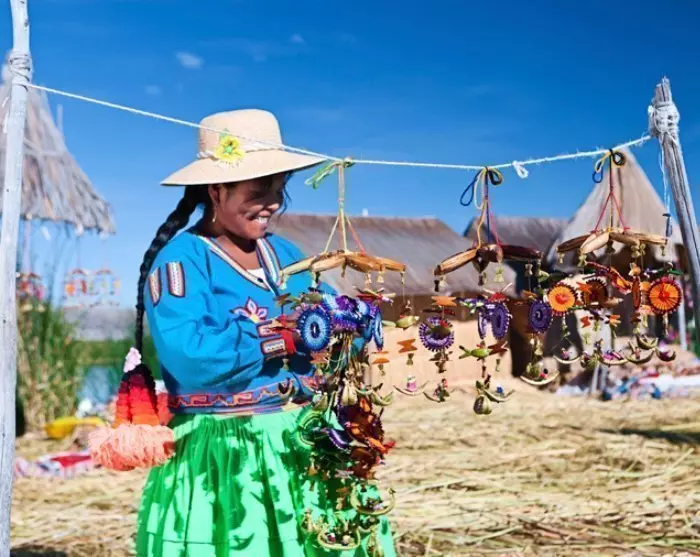 Heretter seiler du videre til øya Taquile, som spesielt er kjent for sitt fargerike kunsthåndverk og sine “strikkende menn”. Her på øya er det nemlig mennene som strikker, og det er de veldig flinke til! Mønsteret på en manns strikkelue, en chullo, viser både kreativiteten og den sivile statusen hans. Kvinnene spinner garnet og vever. Det er kvinnene som vever de vakre beltene til mennenes klesdrakter. Deres håndverk regnes for å være blant landets fineste.