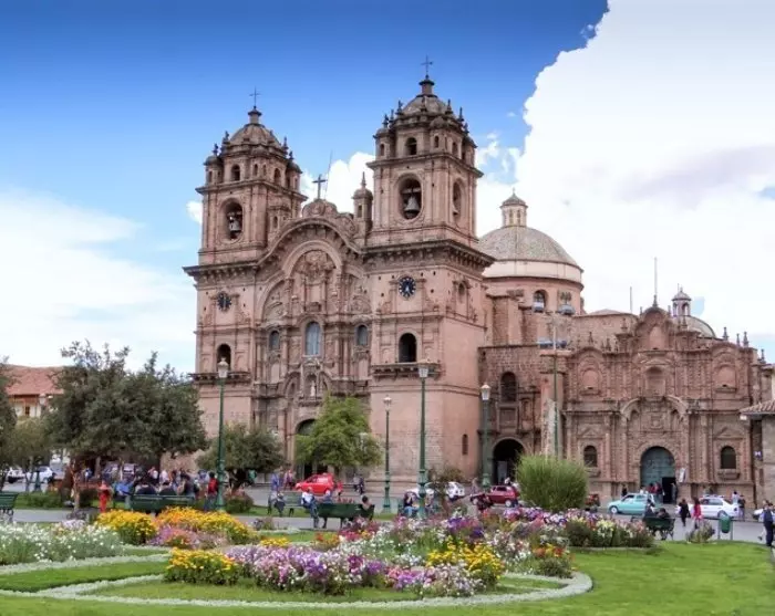 Det er også her du finner Cuscos katedral. Den ble bygget med stein fra inkaruinene Sacsayhuamán over inkapalasset Viracochas i kolonitiden. Katedralen har derfor en flott blanding av spansk renessansearkitektur og inkaenes mesterlige steinarbeider. Gaten ved siden av katedralen fører til Santo Domingo-kirken, som er bygget over det som en gang var et av inkarikets viktigste templer, Koricancha. Det tidligere storslåtte soltempelet utgjør kirkens fundament og er bygget uten hjelp av mørtel. Her passer hver enkelt stein perfekt.