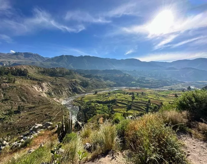 Du krysser den spektakulære høysletten Altiplano. Den er kjent for sitt tørre, golde landskap med store åpne vidder der du kan få øye på beitende lamaer og alpakkaer. Du opplever virkelig de mektige Andesfjellene på denne turen, og flere steder kjører du i over 4 000 meters høyde. Det høyeste passet og utsiktspunktet på ruten heter Mirador de los volcanes, og herfra har du i klart vær en fantastisk utsikt til de omliggende vulkanene. Utsiktspunktet ligger i ca. 4 900 meters høvde, og du vil nok raskt merke at den tynne luften i denne høyden gjør det mer anstrengende å puste. Derfor blir det også bare et raskt fotostopp før du fortsetter ned mot byen Chivay, som fungerer som inngang til Colca Canyon.