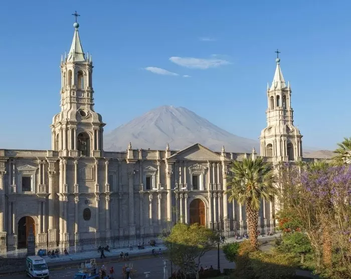 Om morgenen blir du hentet på hotellet og kjørt til flyplassen i Lima, og der flyr du til den elegante kolonibyen Arequipa. Denne byen ligger i Andesfjellene, i nesten 2 400 meters høyde, med vulkanene Misti (5 822 m), Chachani (6 057 m) og Pichu-Pichu (5 669 m) som vakker kulisse.