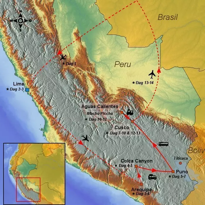 Høydepunktene står i kø på denne reisen med besøk til Cusco, inkaruinen Machu Picchu, de vakre Andesfjellene, fargerike lokalsamfunn ved Titicacasjøen og de koloniale byene Lima og Arequipa.