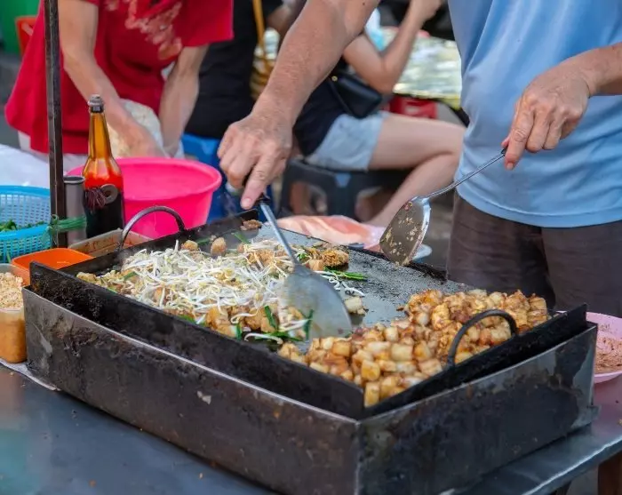 Turen fortsetter gjennom gatene i Chinatown, forbi boder som selger eksotisk frukt – inkludert den beryktede durianen, som du får sjansen til å smake på. Du skal også forbi massevis av matboder, der du kan meske deg på lokalbefolkningens favoritt, stekt gulrotkake, eller nudelretten char keow teow.