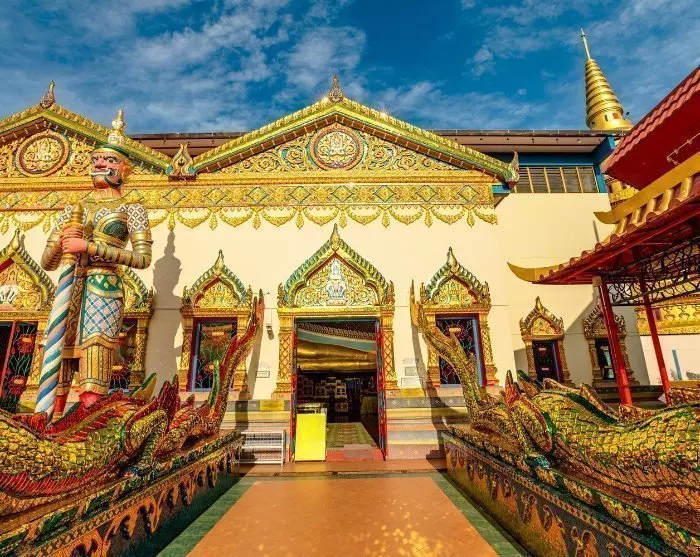 Til slutt skal du besøke det thailandske tempelet Wat Chayamangkalaram, grunnlagt i 1845. Tempelet er berømt for sin fargerike utsmykning og for å huse en av verdens største liggende Buddha-statuer. Den måler hele 33 meter. I tillegg til denne imponerende Buddhaen kan du også oppleve andre vakre Buddha-statuer samt imponerende veggmalerier som skildrer scener fra Buddhas liv.