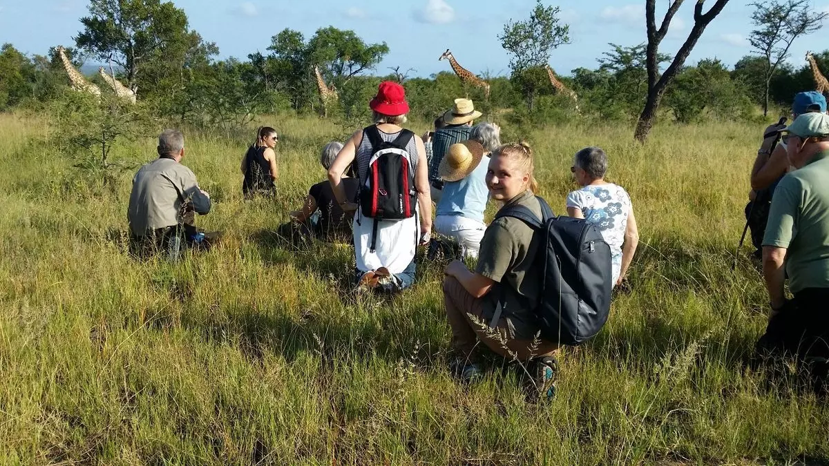 Du drar fra hotellet tidlig om morgenen. Du blir kjørt til et område av Kruger nasjonalpark for å legge ut på en spennende bush walk. Guiden er spesielt opplært i å lede bush walks og vet alt om både store og små ting i naturen. Han lærer deg å tolke naturens signaler ved å lukte, lytte, speide og iaktta som en ekte stifinner. Du hører om dyrenes adferd og hvordan du identifiserer dem på sporene de har etterlatt. På turen hører og lærer du om mange av de små dyrene og plantene du ikke får øye på når du kjører i safaribil. Det er en fantastisk introduksjon til dagene i bushen!
