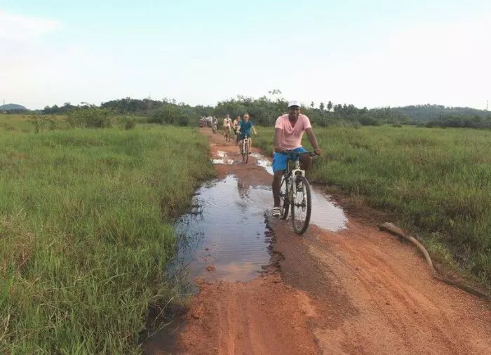 Deretter får du utlevert sykkel, for du skal på en hyggelig sykkeltur gjennom landsbyen. Ruten er flat, så de fleste kan være med. Sykkelturen gir et godt innblikk hvordan livet er i en tradisjonell srilankisk landsby. På turen sykler du bl.a. forbi jungel, rismarker og tradisjonelle hus. Du stopper ved en liten butikk der du kjøper grønnsaker som skal brukes til dagens lunsj.