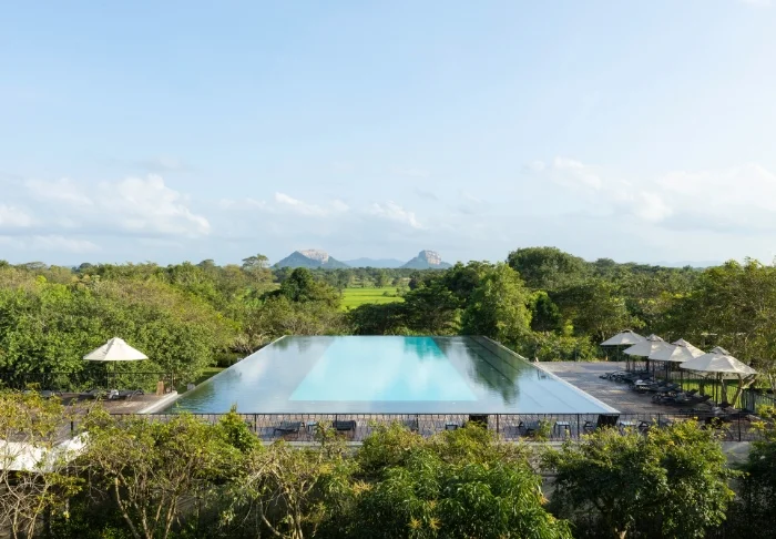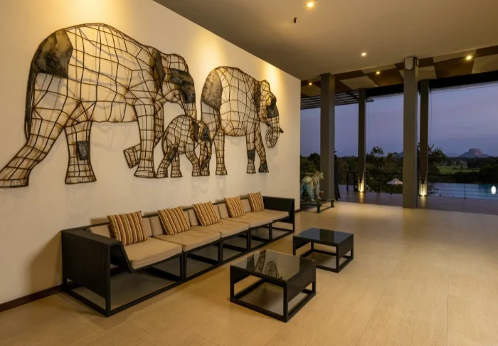 Aliya Resort & Spa ligger midt i Sigiriyas grønne landskap og har en uimotståelig utsikt mot den ikoniske Løveklippen, som reiser seg majestetisk over tretoppene i det fjerne. Her kan du oppleve et interiør hvor naturen og design er vevd sammen i rolige omgivelser.