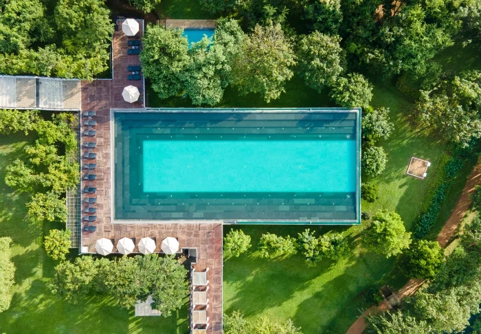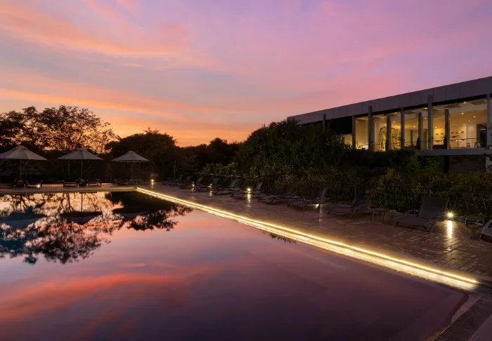 Resortets største høydepunkt er utvilsomt bassengområdet, hvor du får en utsikt du sent vil glemme. Etter et forfriskende bad kan du slappe av ved infinity-poolen og beundre jungelandskapet og Løveklippen i bakgrunnen. Under oppholdet ditt kan du også delta på yoga, meditasjon eller unne deg en behandling på Ayur Vie Spa. For deg som ønsker mer aktivitet, tilbyr hotellet dessuten både treningsrom og badmintonbane.