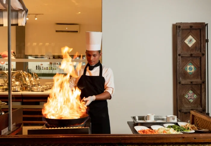 Aliya Resort & Spa har tre restauranter, som hver for seg byr på et bredt utvalg av retter fra Sri Lanka og resten av verden. Hver morgen serverer Alaka Restaurant frokosten din i avslappede omgivelser, og senere på dagen kan du smake deg gjennom både lokale spesialiteter og vestlige favoritter. Kvelden avrundes best med en drink i baren, mens rolig jazzmusikk fyller rommet og mørket senker seg over Sigiriyas grønne landskap.