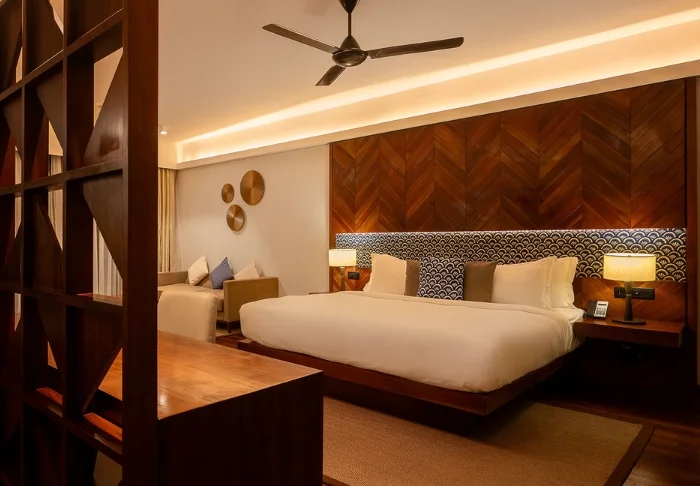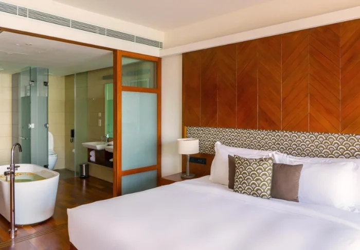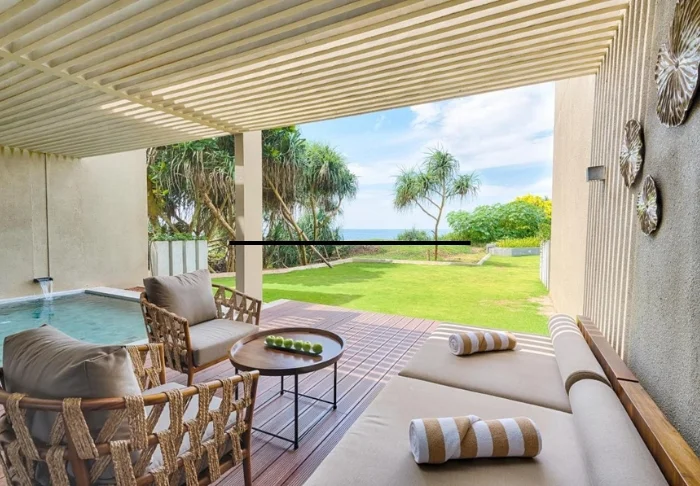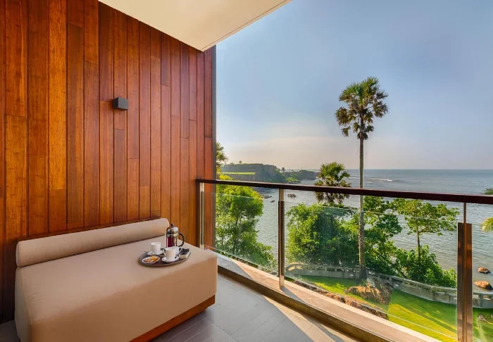Hotellets design er preget av japansk minimalisme, noe du tydelig merker på det Deluxe-rommet du bor på under oppholdet ditt. Rommet er stilfullt innredet i rolige fargetoner med fokus på detaljer og naturlige materialer, samt vakkert trehåndverk som gir en elegant og rustikk atmosfære. Her kan du nyte fasiliteter som aircondition, Wi-Fi, takvifte, minibar, sikkerhetsboks, te- og kaffefasiliteter og TV. Badet byr på badekåpe og tøfler, dusj og tilhørende toalettartikler. Fra din private balkong eller terrasse kan du starte dagen med en kopp srilankisk te og utsikt mot horisonten.