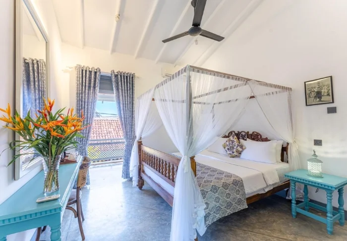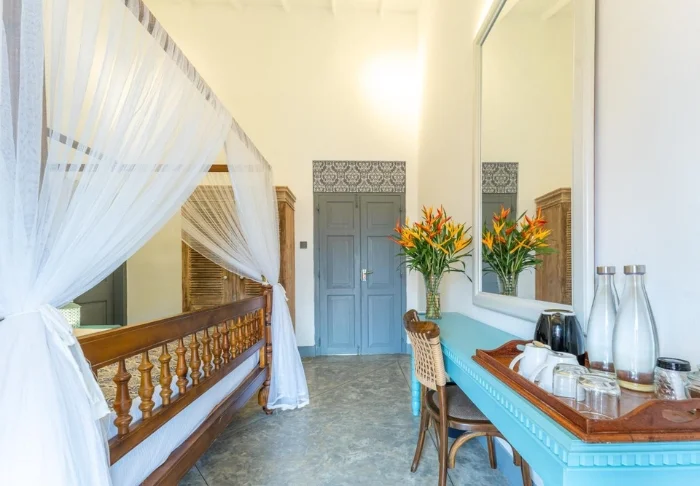 Under oppholdet bor du på et Standard-rom, som gir en intim og personlig atmosfære. Rommet er innredet i klassisk stil med mørke tremøbler og himmelseng, noe som fremhever det koloniale uttrykket. Du har både aircondition, Wi-Fi, te- og kaffefasiliteter, gratis flaskevann og eget bad med flott dusjnisje og komplementerende toalettartikler. På din private balkong kan du også nyte en stille stund mens hverdagen glir forbi i fortets smale gater.