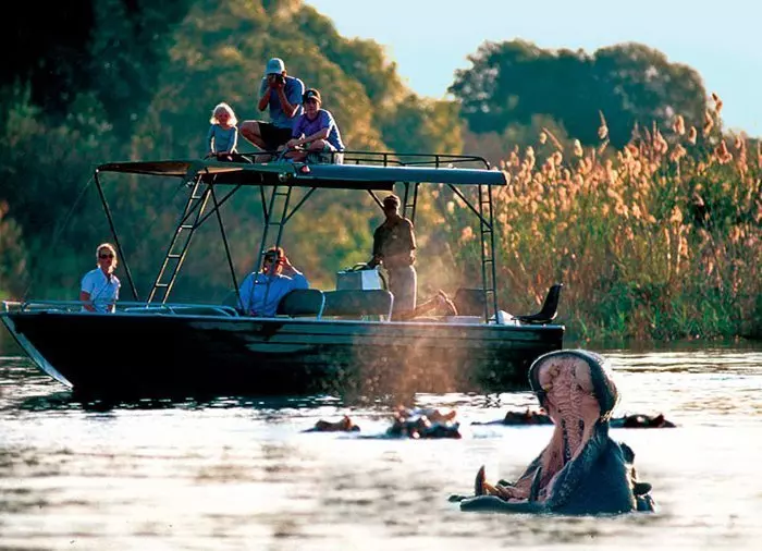 Vår partner i Zambia er blant de få selskapene som har tillatelse til å seile på den delen av Zambezi-elven som kalles ”Lower Zambezi” – dvs. den delen av elven som ligger nærmest Victoria Falls. Med spesialdesignede båter er det mulig å seile helt bort til de små øyene som ligger overfor vannfallet og få en flott utsikt til ”Røyken som tordner” og de mange regnbuene vanndråpene lager på himmelen.