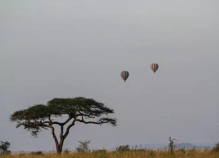 Det finnes nesten ikke noe mer stemningsfullt enn synet av solen som står opp over Afrika – sett fra en luftballong. Stillheten brytes av brenneren, du føler temperaturforskjellene i de ulike luftlagene, og dyrene ser ut som små lekefigurer der de går nede på jorden og beiter fredelig.