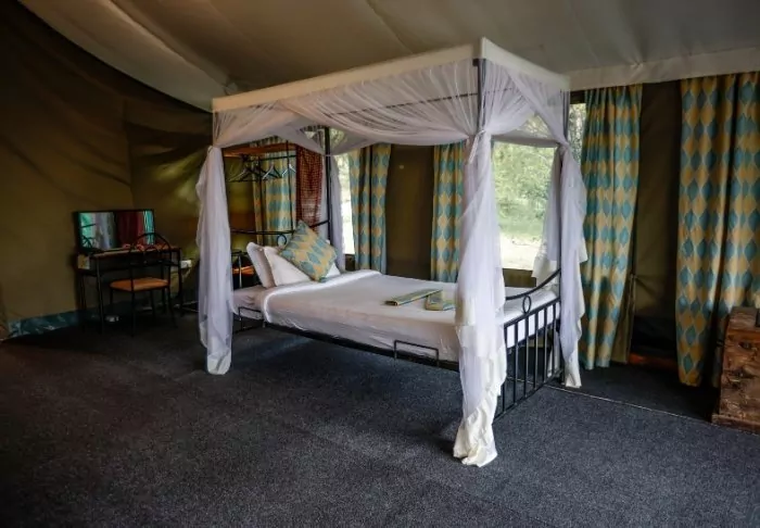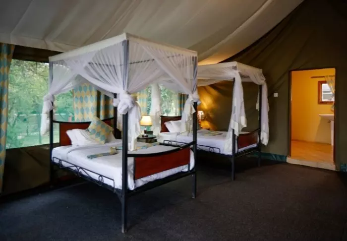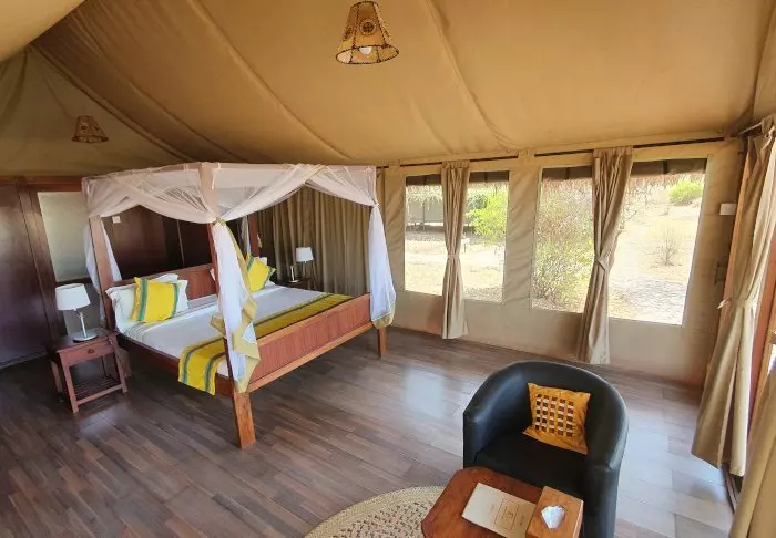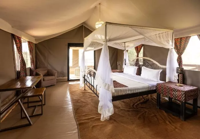 Leiren er en klassisk afrikansk safaricamp med rustikke og komfortable kanvastelt. Naturen er rett utenfor døren. Det er ikke ualminnelig at det kommer ville dyr gjennom leiren om natten, og du kan forvente å se både gaseller, antiloper, sebraer og til tider elefanter og hyener rundt leiren.