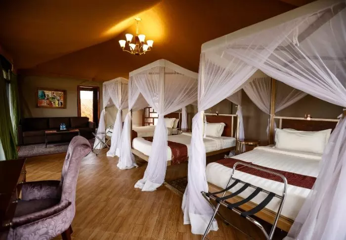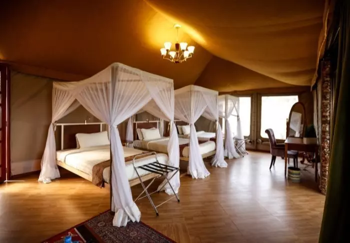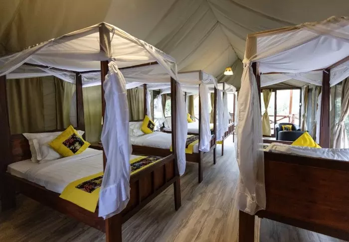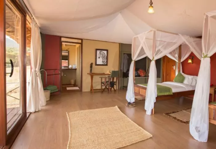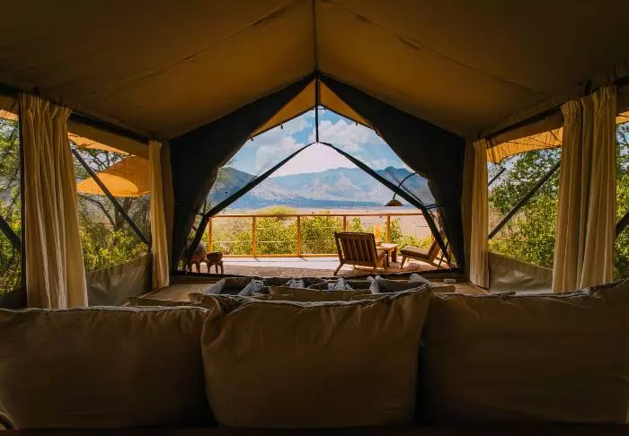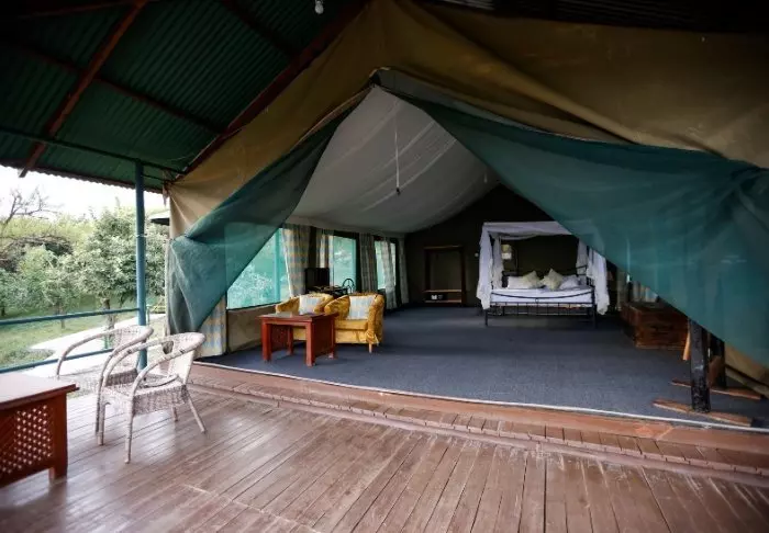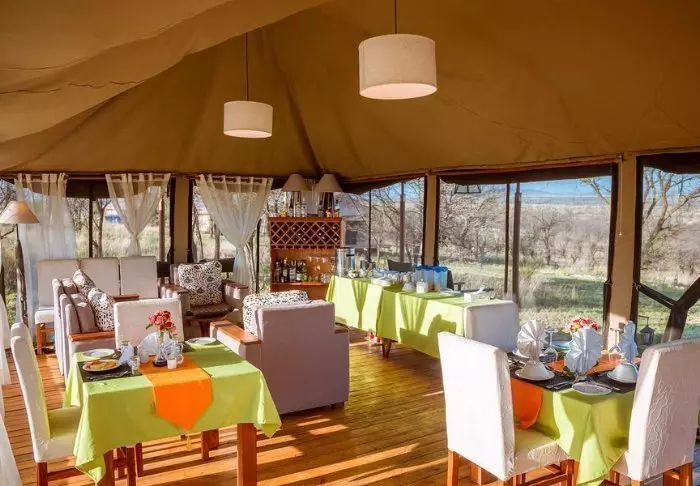 Lodgen består av 10 luksustelt med stålramme og vegger av lerret. Her er det høyt under taket, og badet, som har murvegger, ligger i forlengelsen av rommet. Alle de 10 luksusteltene er bygget på hver sin individuelle plattform med en stor terrasse av tre, og derfra har du flott utsikt til saltvannssjøen Lake Eyasi.