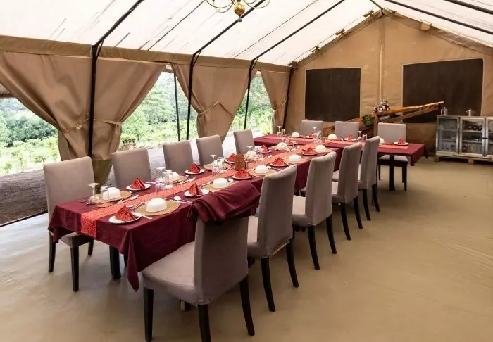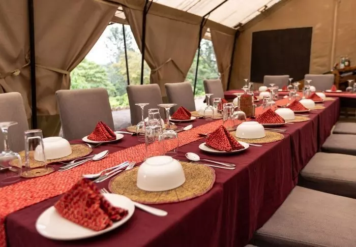Her spiller god mat og drikke hovedrollen. Alt er økologisk og lokalt produsert, så langt det er mulig. Denne campen har et stort fokus på bærekraft. Alle materialene er fra Tanzania, og leiren er 100 % solcelledrevet.