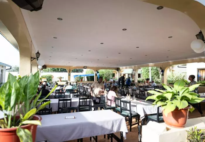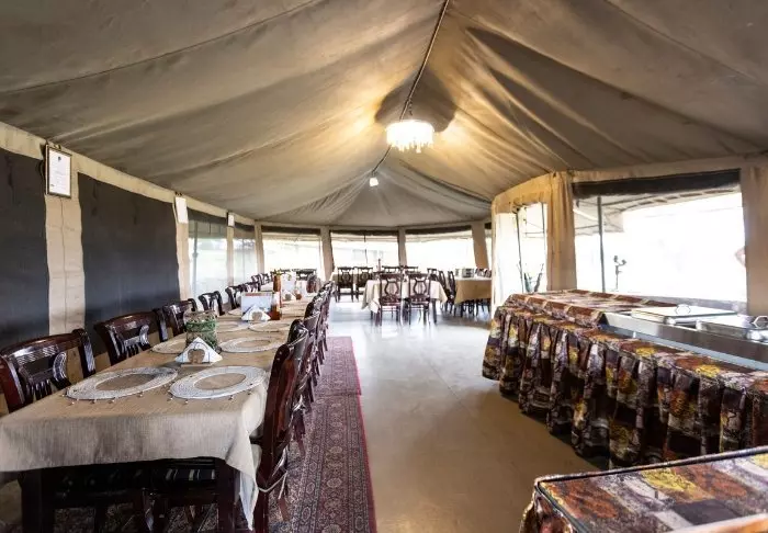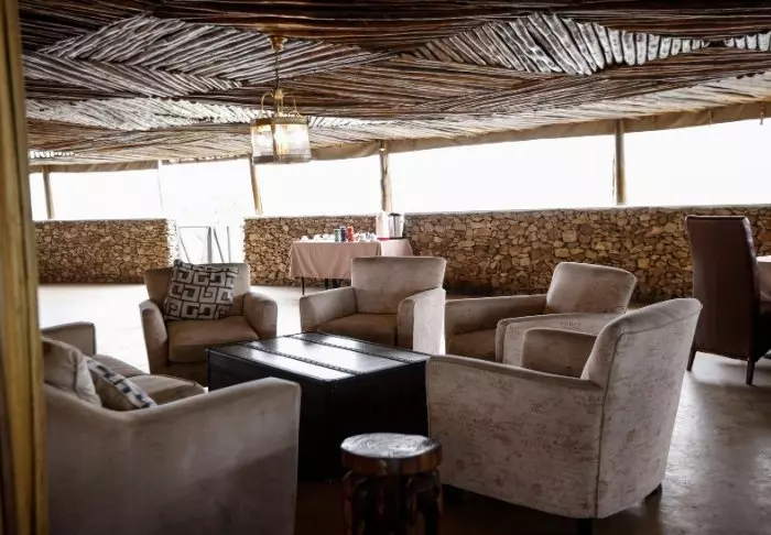 Fra restauranten er det fantastisk utsikt over området, som ligger på migrasjonsruten. I dette området lever det også store flokker av forskjellige antilopearter, bøfler, elefanter, flamingoer og andre fugler.