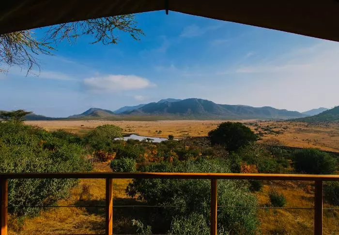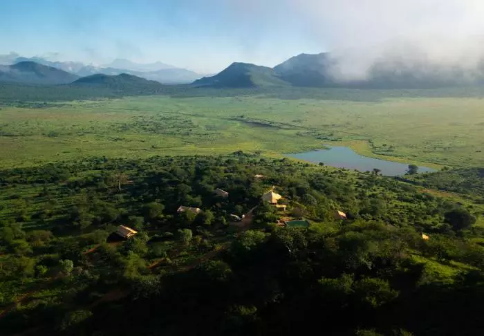 Mkomazi Wilderness Retreat ligger på en bakketopp med storslått utsikt over Mkomazi nasjonalparks eneste permanente vannhull.