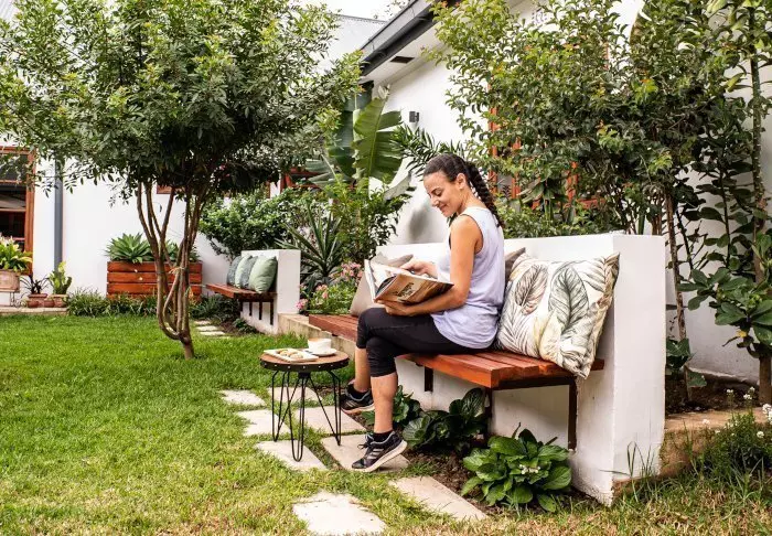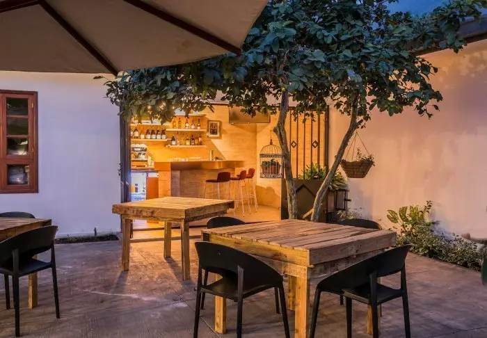 Den hyggelige dagligstuen frister til å tilbringe ettermiddagen med en god bok, og den overdekte terrassen er et perfekt sted å sitte med en kopp kaffe og kanskje bruke stedets meget gode Internett. I den lille hagen er det basseng med liggestoler, og på den ene siden av huset finner du den innholdsrike baren.