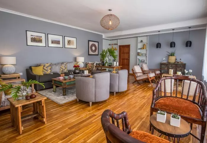 Alle rom er store og smakfullt innredet med tremøbler og gamle bilder på veggen – og ofte står det friske blomsterbuketter på bordet. Alle rom har egen veranda med stoler og bord.