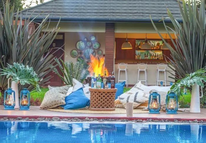 Om kvelden tennes det ofte bål i hagen, og over en drink før middagen kan du utveksle reisehistorier med de andre gjestene.