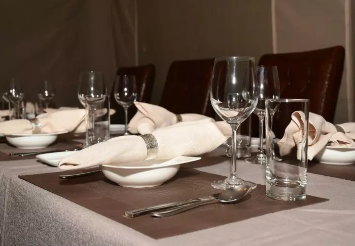 Måltidene spises som regel i messeteltet – hvis det ikke dekkes opp i bushen utendørs, og da kan du spise med utsikt til den afrikanske kveldshimmelen ved et hyggelig leirbål.